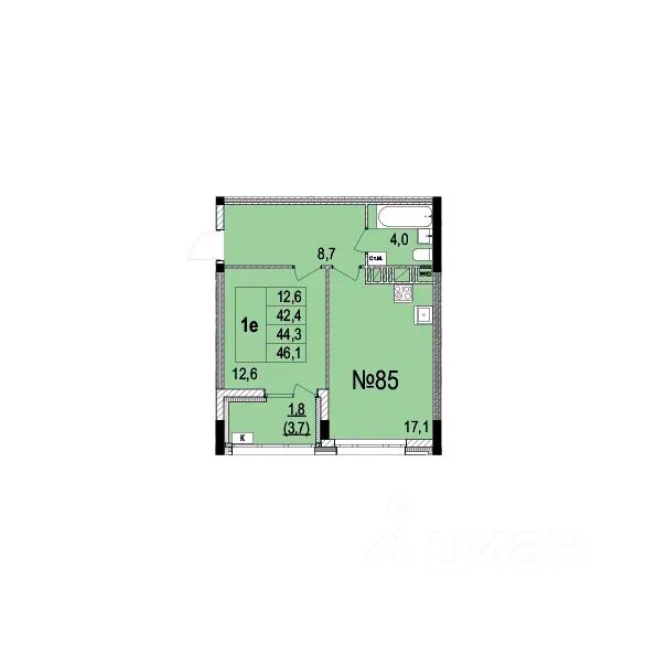 Общая площадь44,15 м2