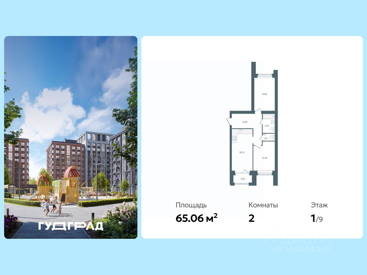 Общая площадь65,05 м2