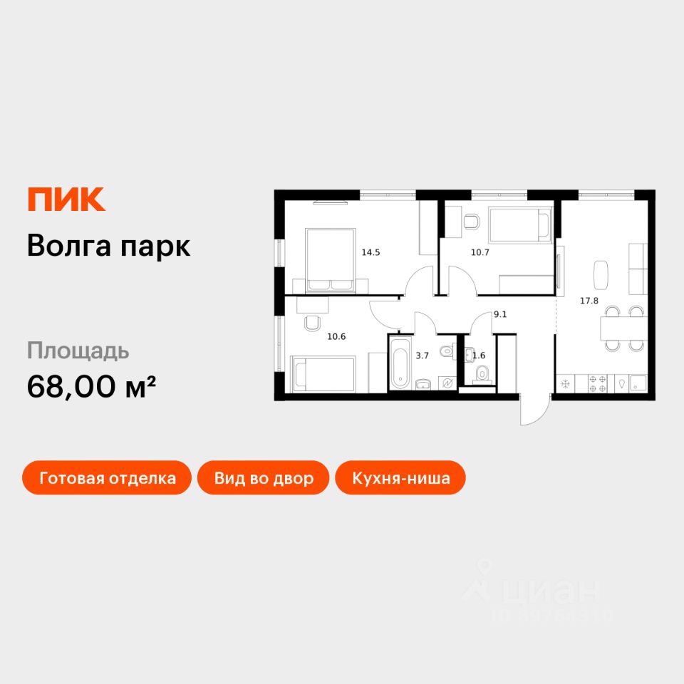 Продаётся 3-комн. квартира площадью 68 кв.м на 1 этаже 17 этажного дома (Корпус 1В, Секция 2) проекта ПИК Волга парк. Светлый просторный подъезд на уровне земли, функциональная планировка, большие окна, c отделкой.
