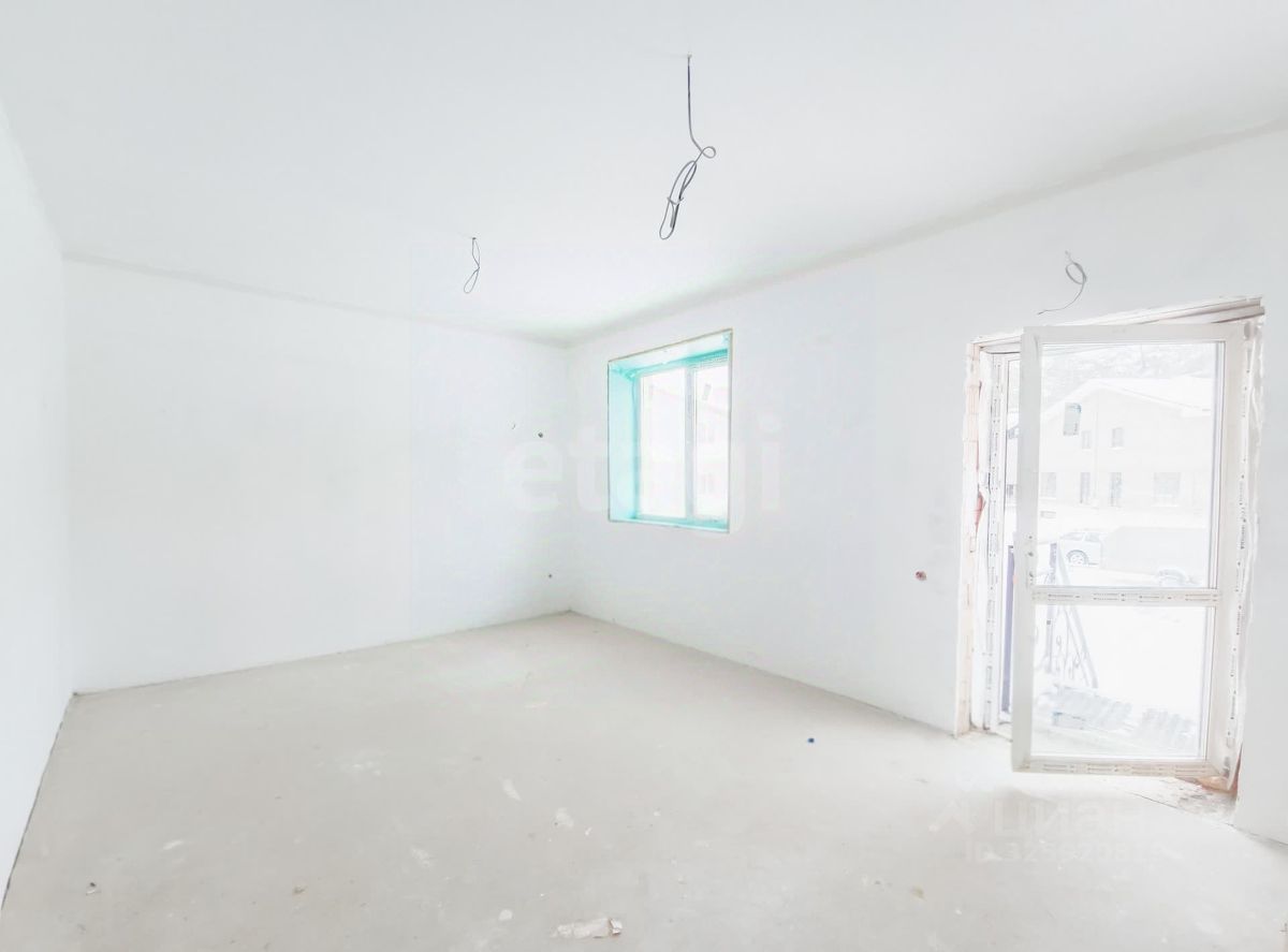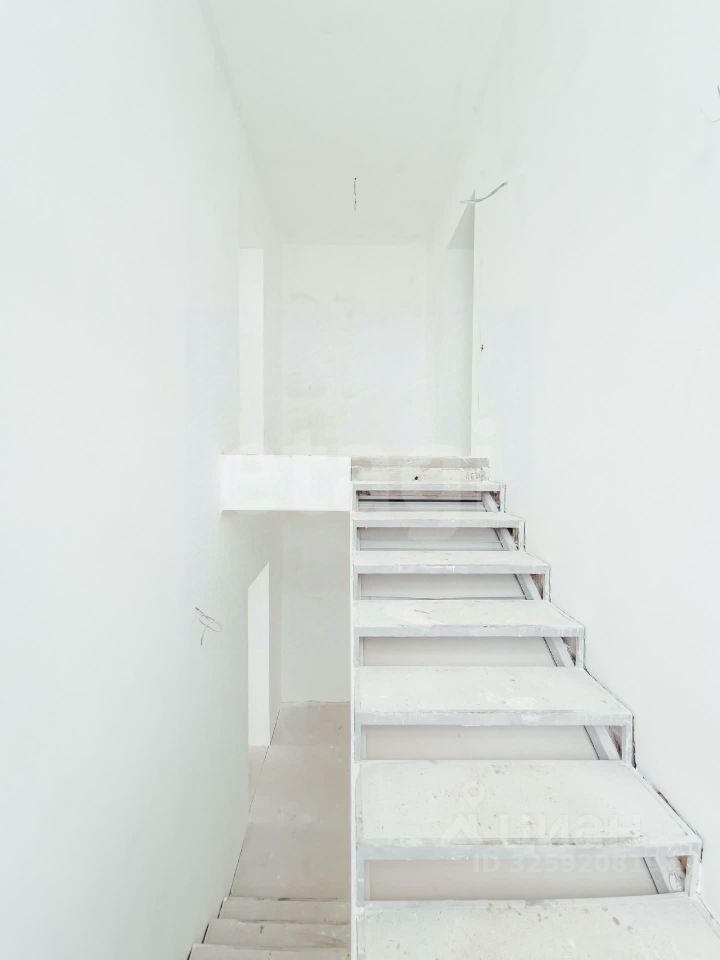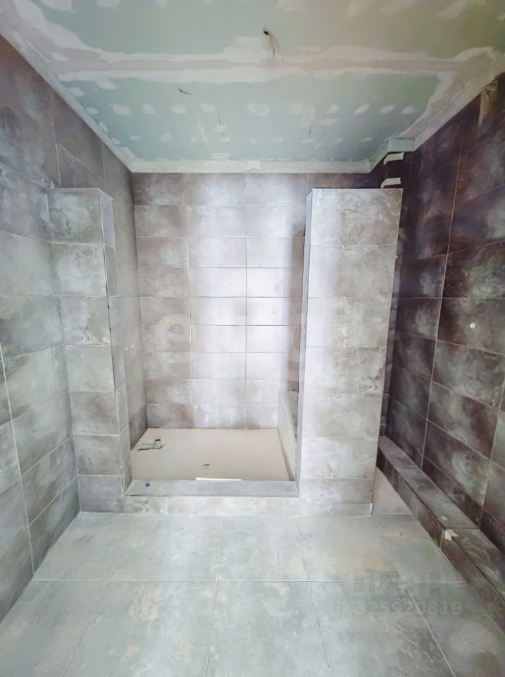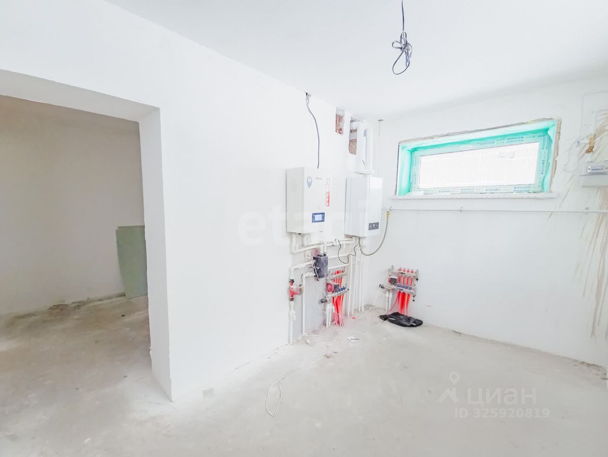 Площадь половины дома 180кв.м. Внутри выполнена разводка электричества 220 и 380, воды и отопления ( теплые полы по всей площади пола на цокольном и первом этажах, радиаторы отопления на верхнем этаже), установлен электрический и газовые котлы, договор на поставку газа заключен. Отделка стен - предчистовая (whitе-bох), выполнена стяжка пола.