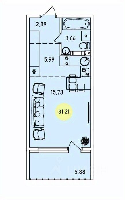 Просторная и светлая квартира с удобной планировкой и большой кухнейгостиной — отличное решение для комфортной жизни или сдачи в аренду. О квартире: - Общая площадь: 31,21 м²