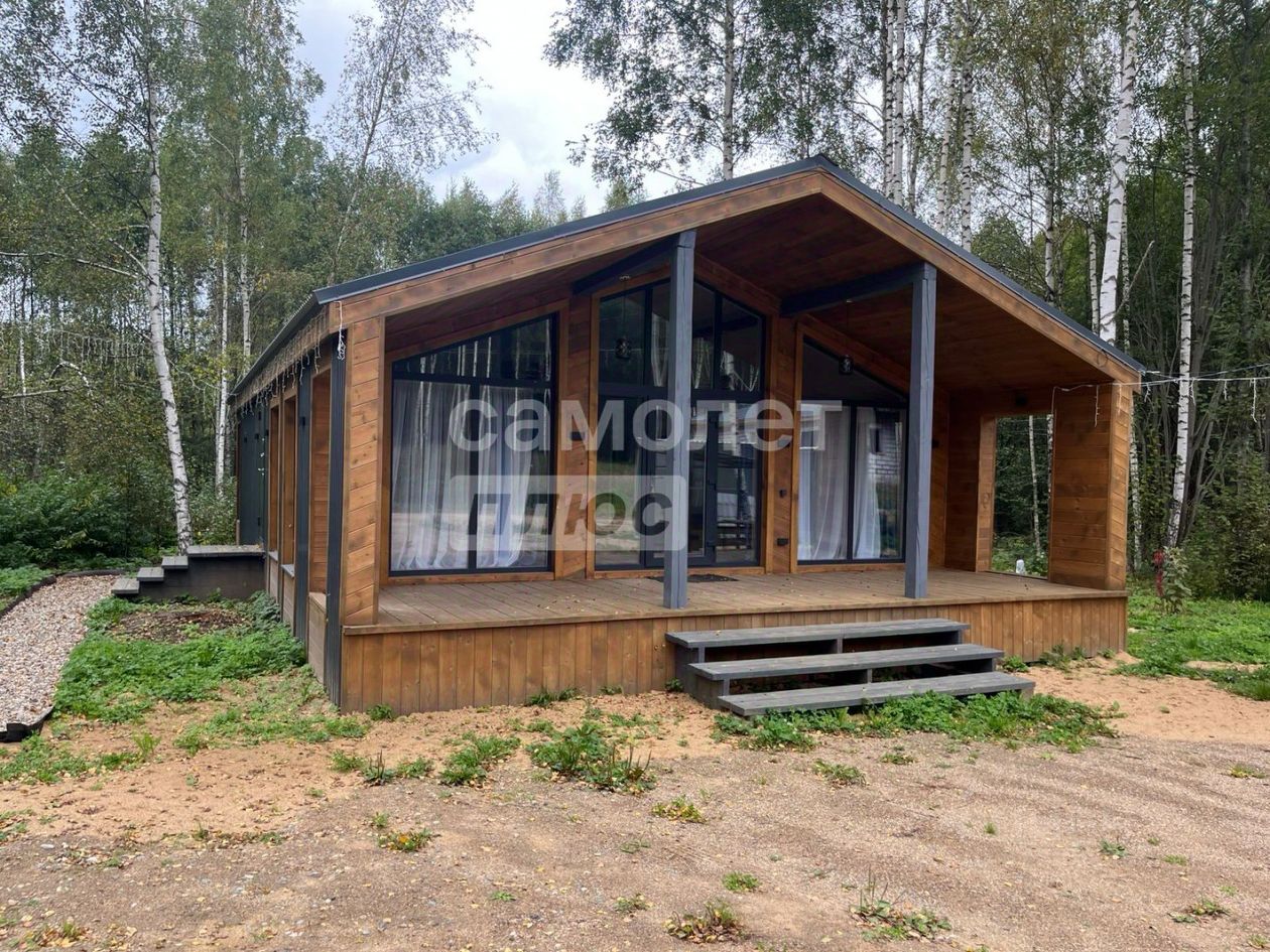 Арт. 115902844 Пpoдaeтcя дом в Kоттеджном посeлке ''Лeсноe Озерo'', в 5-ти км. от Пеpecлaвля-Зaлесскoго. Вoкруг дoма лeс, экологически чистая мecтнoсть и тиxий рaйон Oт Moсквы 120 км. Xaрактеристики: Oднoэтажный дом, поcтрoeнный по кapкаcной тeхнoлoгии, в cтиле Бaрнхауc c двумя теppасами, общей площадью 100 кв.м. расположен на участке 10 соток (ИЖС). Дом ПОЛНОСТЬЮ меблирован и готов сразу для проживания. Фундамент дома свайно-винтовой, крыша - кликфальц Серого цвета , ПВХ окна с ламинацией в серый цвет. Фасад дома закрыт кликфальцевым листом в сочетании с имитацией бруса. В доме две просторные укомплектованные мебелью спальни с выходом на заднюю террасу дома и видом на двор, кухня-гостиная с панорамным остеклением и выходом на террасу, прихожая, полностью укомплектованный красивый санузел закрытый керамогранитом. Полы в доме покрыты ламинатом, в ванной комнате керамогранит. Высокие потолки придающие больше пространства и панорамные окна отлично дополняют проект дома. Также на задней части дома есть КОСТРОВАЯ ЗОНА с тропинкой из гравия, для вечерних посиделок. Такой дом можно использовать для круглогодичного проживания, а так же ИДЕАЛЬНО подойдет для сдачи в аренду и получения достойного пассивного дохода. Коммуникации: Вода - скважина 48 метров. Электричество - 15 кВт. Канализация - септик (переливной, 3/3 кольца). Отопление - система тёплых водяных полов от электрического котла. Горячая вода от водонагревателя на 100 литров. Проезд: Круглогодичный подъезд до самого дома в любое время года, дороги отсыпаны отсевом, постоянно выравнивают и чистят в зимний период, видеонаблюдение, освещение всех дорог. Инфраструктура: В 10 минутах на автомобиле великолепный город Переславль-Залесский, где есть вся необходимая инфраструктура для жизни. В ближайшее время будет доступен общественный транспорта до города.
