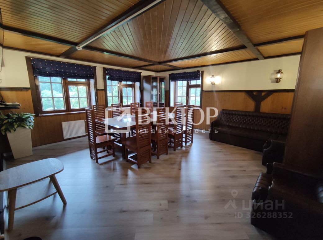 Продуман до мелочей, тёплый и атмосферный: * 4 спальни с индивидуальными санузлами, * Общая кухня, * Просторный каминный зал с дровяным камином, * Зимний сад с панорамными окнами и видом на природу, * Бильярдный зал (русский бильярд), * Полноценный SPA-комплекс: * финская сауна, * бассейн, * инфракрасная комната, * зона отдыха. * Банкетный зал на 40 гостей, * Действующее кафе с профессиональной кухней, вместимость до 150 гостей.