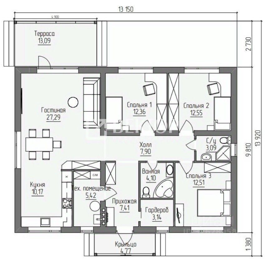 ЩЕДРИНО - 5 МИНУТ ОТ ЯРОСЛАВЛЯ - ПО МОСКОВСКОМУ ПРОСПЕКТУ Кадастровый номер земельного участка: 76:12:010101:1072 Предлагаем к продаже дом каркасного типа - идеальное решение для тех, кто ищет комфортное жильё с современным подходом к строительству! Дом расположен на участке площадью 13 соток и представляет собой одноэтажное здание общей площадью 115,8 м. В доме 3 комнаты, а высота потолка варьируется от 2,7 м в низкой точке до 3,9 м в коньке, что создаёт ощущение простора и свободы. Прочные основы и качественные материалы - Фундамент выполнен из железобетонных свай с обвязкой из бруса 150 200 мм. - Каркас дома - из доски: наружные стены и стропильная система - 45 195 мм, капитальные внутренние стены - 45 145 мм, перегородки - 45 95 мм. - Перекрытие первого этажа - из сухой строганной доски 45 195 мм, а пол - из ОСБ-плиты толщиной 18 мм на деревянной обрешётке из доски 25 100 мм. Тепло и комфорт в любое время года Дом тщательно утеплён минеральным утеплителем URSA TERRA (или его аналогом): - утепление перекрытий, наружных стен и частично кровли - 200 мм, - шумоизоляция внутренних перегородок - 100 мм, - пароизоляция с проклейкой стыков скотчем ''ДельтаМультибенд''. Эстетика и функциональность: - Крыша покрыта гибкой черепицей, а потолок выполнен из обрешётки из доски 25 100 мм. - Внутренняя отделка - стены обшиты гипсокартоном (ГКЛ) толщиной 12 мм, без шпаклёвки, без оконных и дверных откосов. - Фасад отделан имитацией бруса и окрашен, подшив кровли выполнен из пластиковых софитов, а обналичка окон и углы дома - из сухой окрашенной доски. - Водосточная система - металлическая, окна - ПВХ с пятикамерным профилем и двухкамерным стеклопакетом (3 стекла), входная дверь - металлическая утеплённая. Коммуникации: В доме проведена разводка внутренней системы электроснабжения с распаечными коробками вверху и выводом концов для розеток и освещения. Канализация представлена трубами ПВХ (110 и 50 мм), есть гильза для водопроводной трубы (32 мм) и разводка полипропиленовых труб внутри дома. Установлен электрический котёл без автоматики, а также предусмотрены радиаторы и разводка труб для системы отопления. Этот дом - прекрасная возможность создать уютное семейное гнёздышко, где каждый член семьи будет чувствовать себя комфортно и безопасно. Здесь есть всё необходимое для того, чтобы воплотить в жизнь ваши самые смелые дизайнерские решения и создать интерьер мечты. Не упустите шанс стать владельцем этого замечательного дома! id:72777. - Безопасность - Лучшие юристы окажут полное сопровождение на всех этапах купли/продажи - Качество и Профессионализм. Наши специалисты признаны лучшими по уровню сервиса порталов. - Надежность и экономия. Мы являемся ключевыми партнерами всех ведущих банков. Личный ипотечный брокер выберет для Вас оптимальную программу ипотеки. - Прозрачность. Фиксированное агентское вознаграждение. Оплата только после совершения сделки. - Комфорт. Весь комплекс услуг купли/продажи. Формат ''одного окна'' в одном офисе в центре города - Уверенность. Мы входим в ТОП- 25 ведущих агентств недвижимости РФ по версии рекламных площадок.