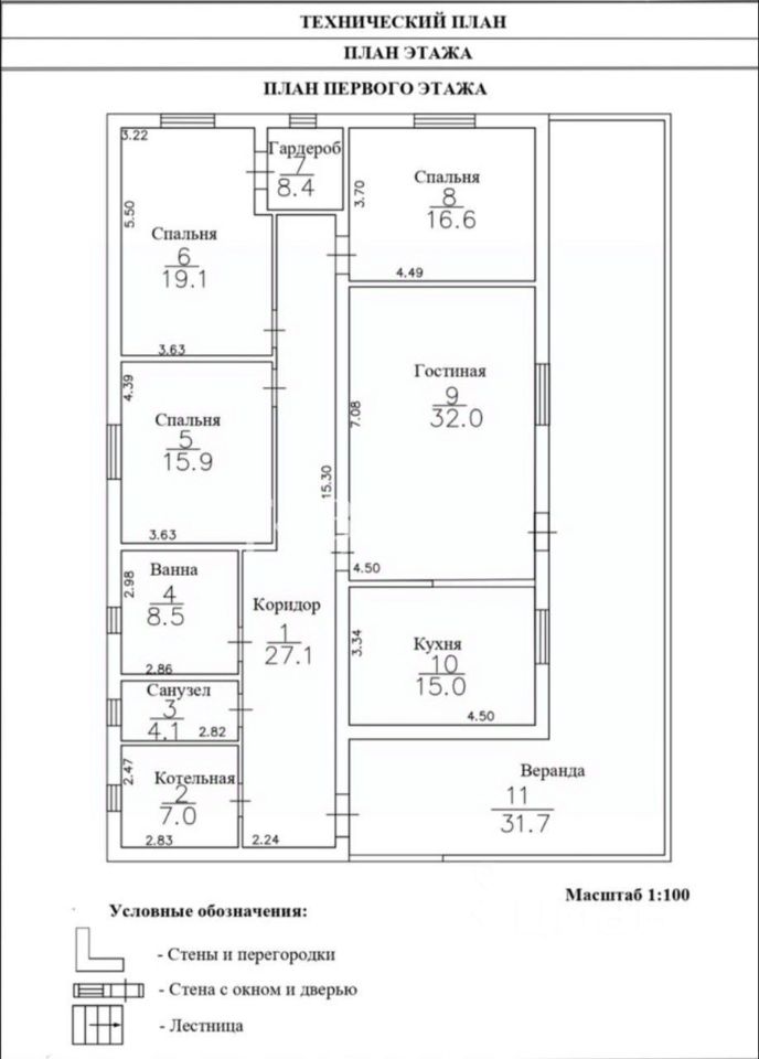 Основные характеристики: * Этажность: 1 этаж. * Площадь здания: 243 кв.м. (включая веранду 74 кв.м.) * Площадь участка: 8,5 соток. * Количество комнат: 4 (3 изолированные комнаты и гостиная, совмещённая с кухней) * Материал стен: газосиликатный блок.