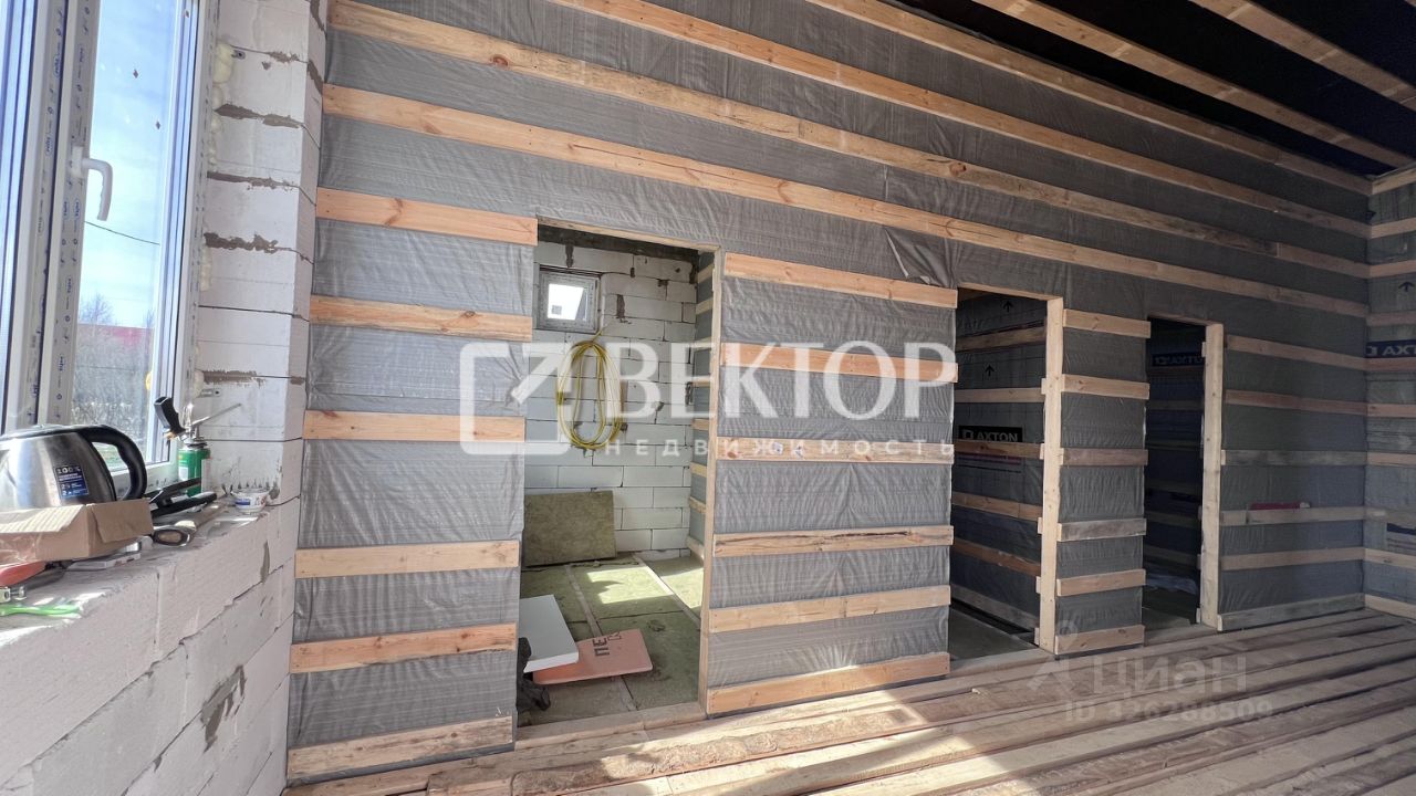 Достоинства дома: * Высокие потолки и продуманная планировка. В доме три комнаты, включая спальню с гардеробной. Также есть огромная кухня-гостиная, раздельный санузел и котельная.