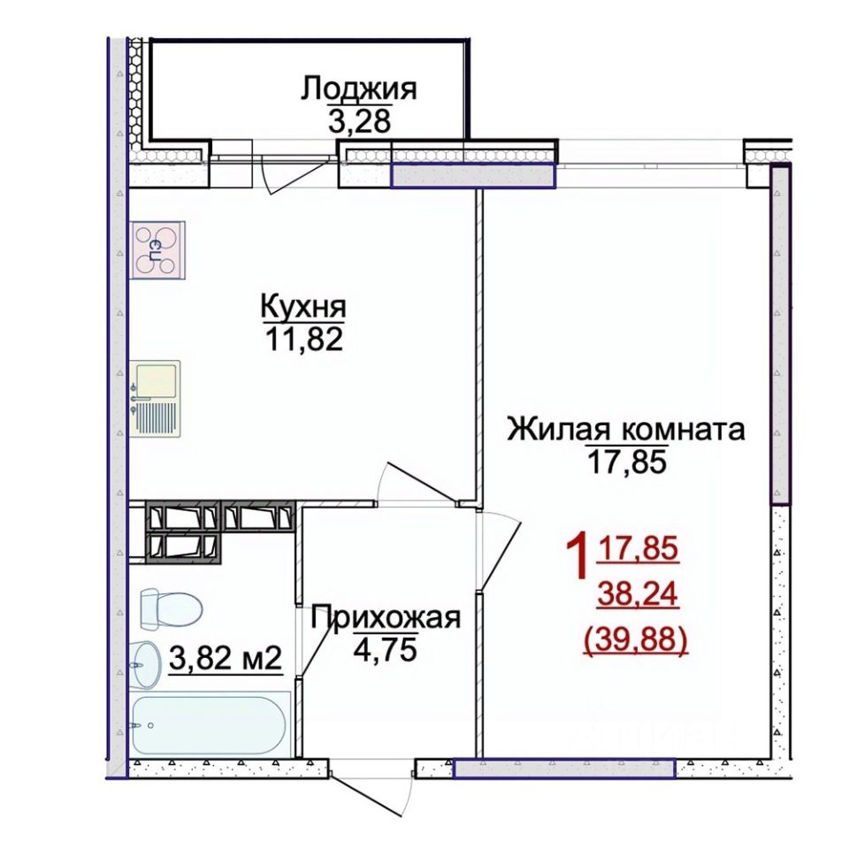 Общая площадь39,88 м2