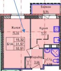 Общая площадь32,51 м2