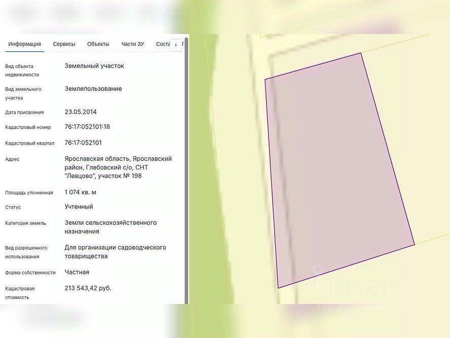 АУКЦИОН. Объект реализуется через электронный аукцион с 2026-02-01 по 2026-02-28 Имущество реализуется путем проведения торгов в форме аукциона в соответствии с Федеральным законом ''О несостоятельности (банкротстве) '' от 26.10.2002 127-ФЗ. Земельный участокобщая площадь 1074 +/- 8 кв. мкадастровый номер 76: 17: 052101: 18категория земель: земли сельскохозяйственного назначениявид разрешенного использования: для организации садоводческого товариществаместонахождение: Ярославская область, Ярославский район, Глебовский с/о, СНТ ''Левцово'', участок 198координаты: 57.78606216, 40.03538812Прием заявок осуществляется на электронной торговой площадке ''МЭТС'', задаток 10%. Помощь от Сбербанка - Агентский сервис по участию на торгах. Агент за Вас оформит документы, подаст заявку и примет участие на торгах. Подробнее о способах оформления сделки, стоимости приобретения имущества Вы можете узнать по номеру телефона, указанному в объявлении, в будние дни с 09: 00 до 18: 00 (по времени МСК, GMT+3) , также на сайте активов Банка Portal-DA.