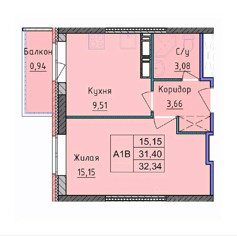 Комната 15,15 кв.м, Кухня 9,51кв.м