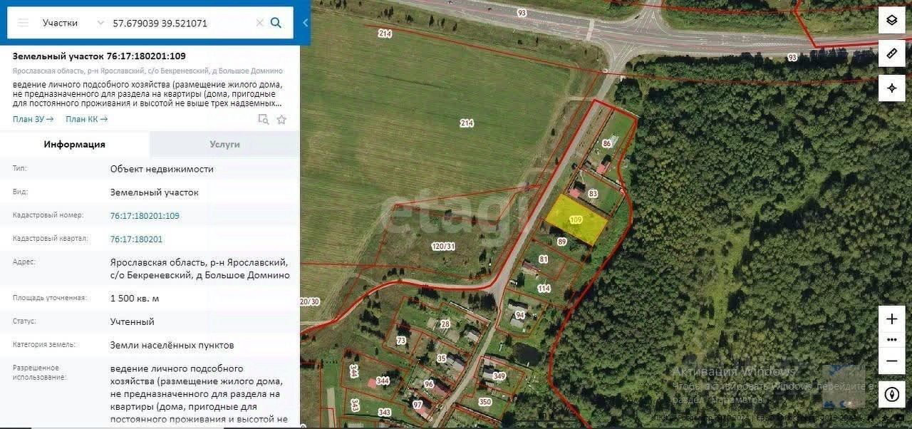 Земельный учаcток 15 соток в д. БОЛЬШОЕ ДОМНИНО Ивняковского сельского поселения, кaдастровый номер 9.