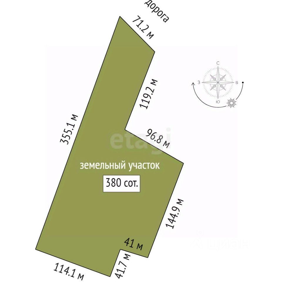 Площадь участка380 соток