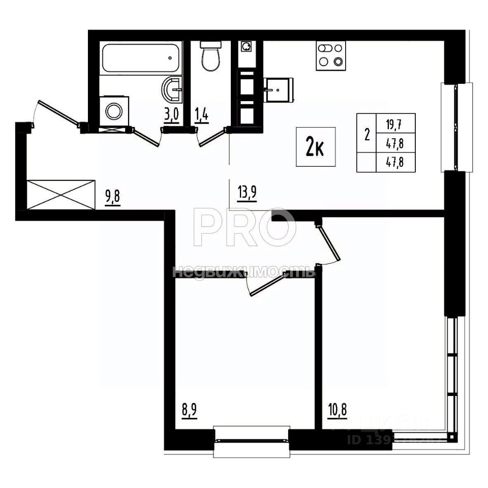 Общая площадь47,8 м2