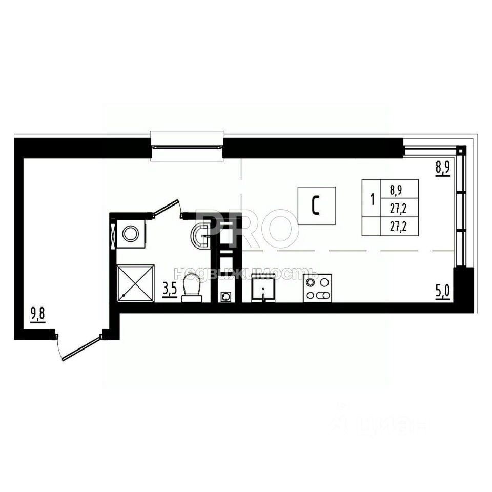 Общая площадь27,2 м2