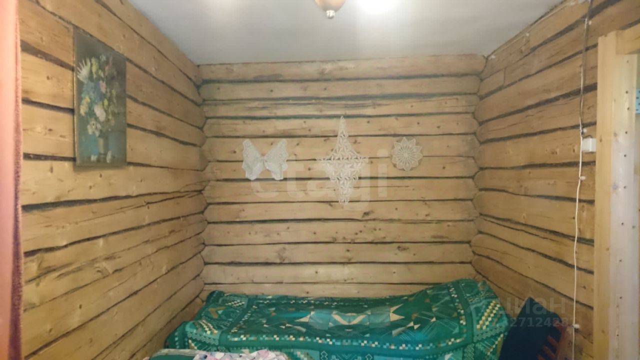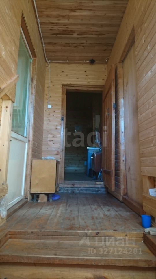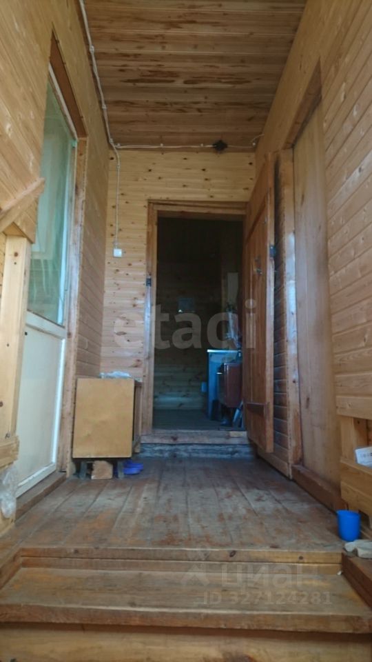 Дом одноэтажный, высокий, бревенчатый, площадью 70 кв.м, поднят на ленточный фундамент из кирпича. Окна деревянные во всем доме, заменены, в комнатах (19 и 11 кв.м) поставлены двойные рамы. Деревенские двери заменены, поставлены нормальной высоты, из толстых деревянных досок. Внутри дома стены отчищены от обоев, покрыты лаком. Коридор, веранда, кухня и прихожая обшиты вагонкой.