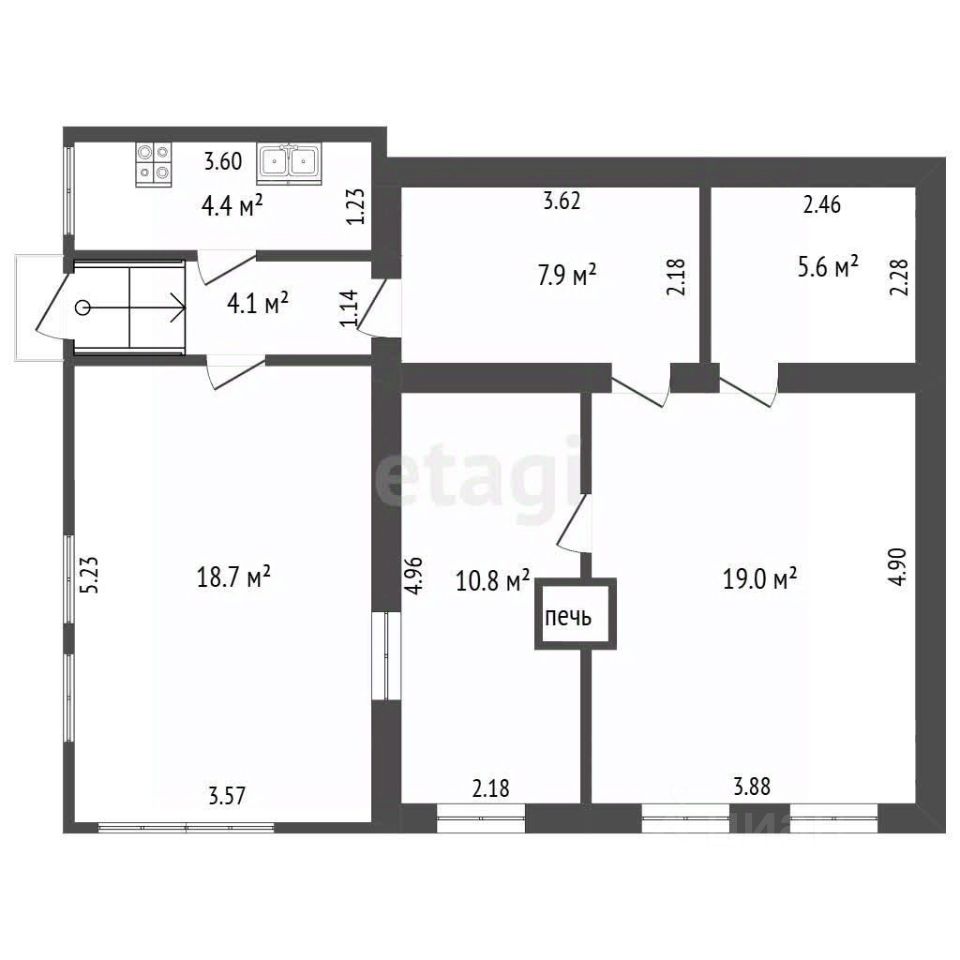 Летняя столовая - веранда, большая (18 кв.м), расположена напротив кухни, есть столы. лавки и мягкий уголок. На кухне остается плита, духовка, гарнитур, умывальник с электрическим подогревом над раковиной. Второй умывальник с раковиной - в коридоре, без подогрева.