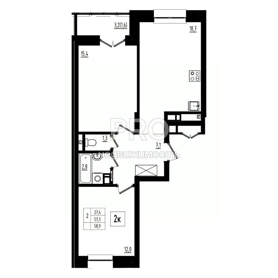 Общая площадь58,9 м2