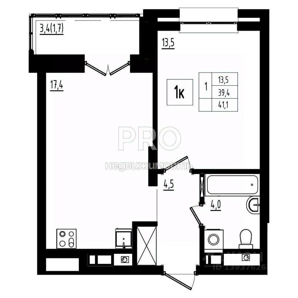 Общая площадь41,1 м2