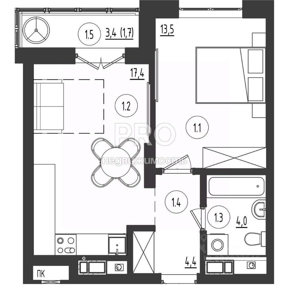 Кухня17,4 м2