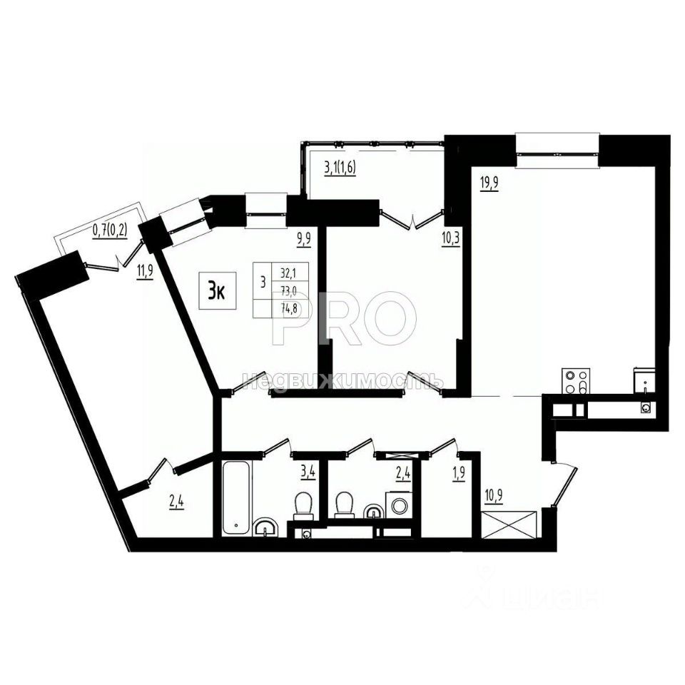 Общая площадь74,8 м2