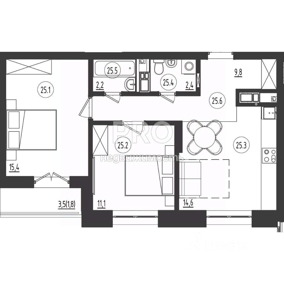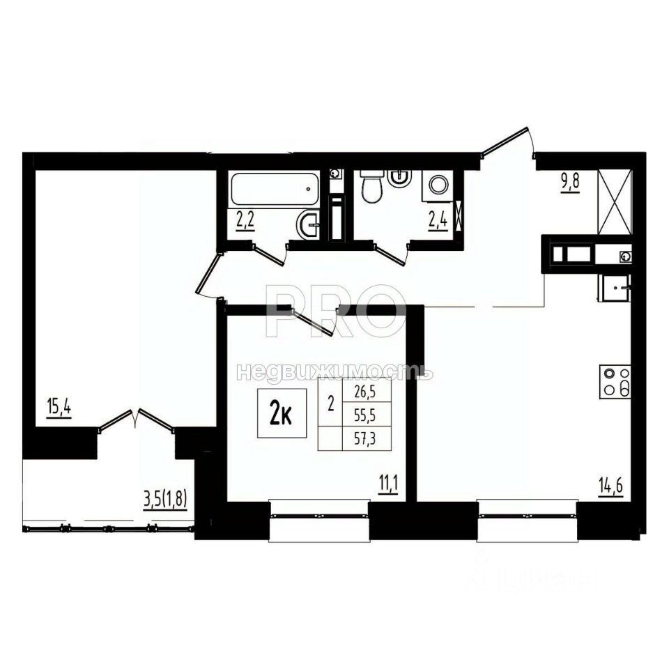 Общая площадь57,3 м2