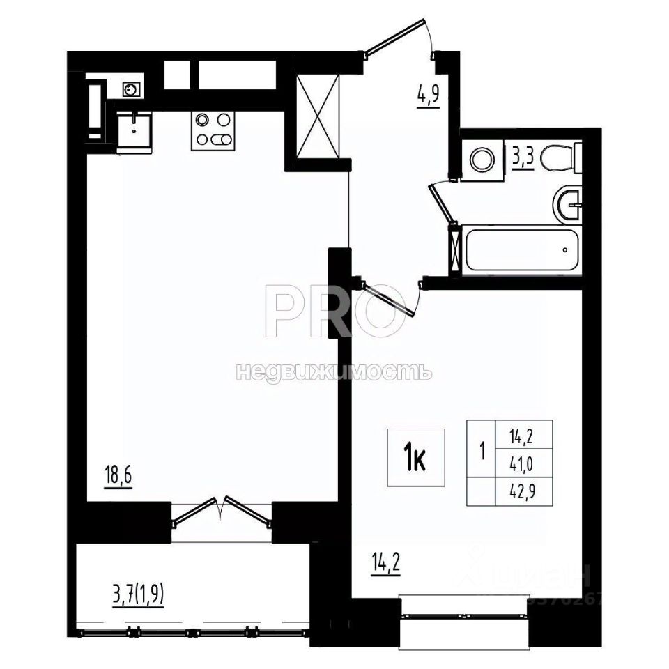 Общая площадь42,9 м2