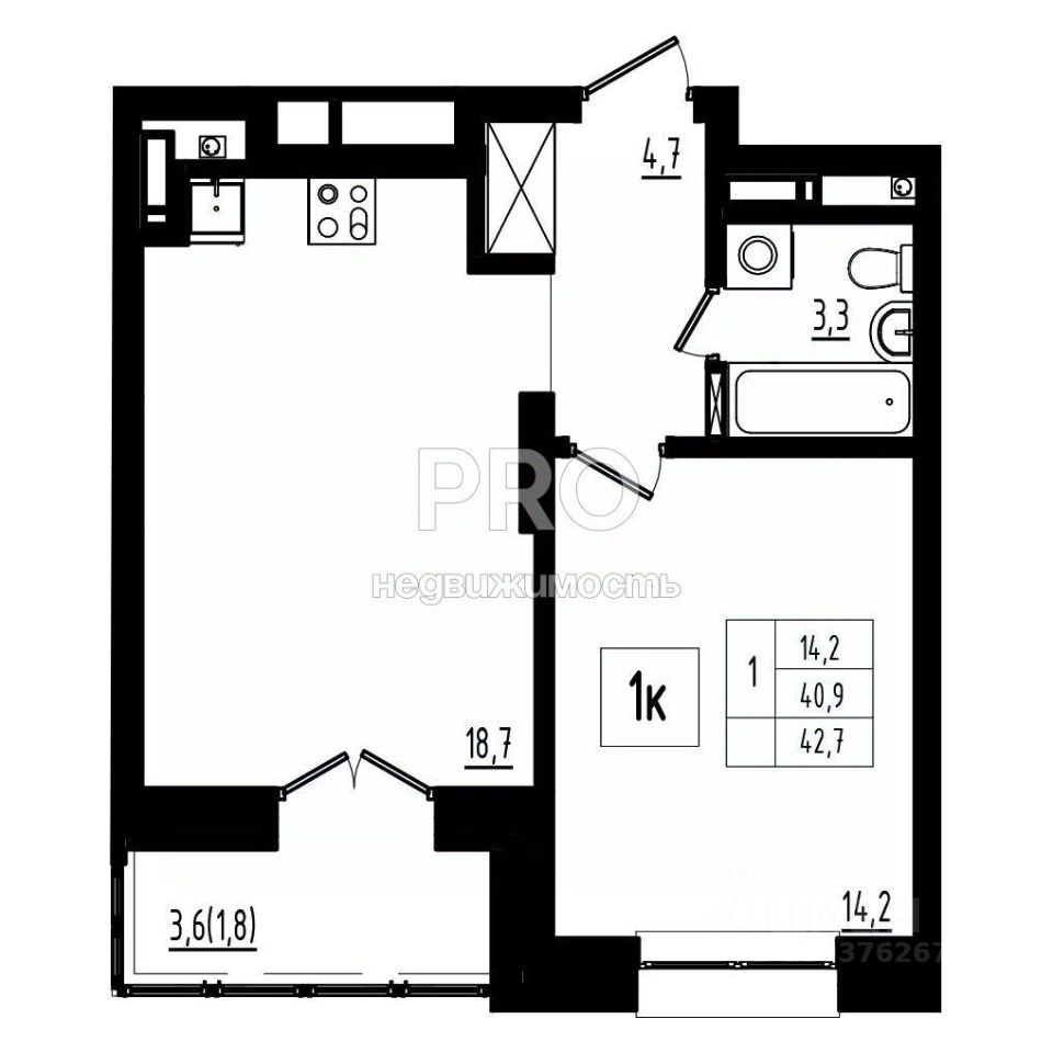 Общая площадь42,7 м2