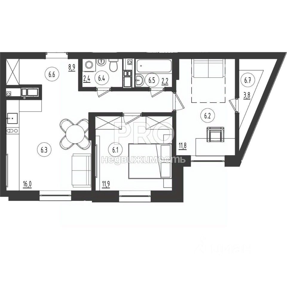 Общая площадь57 м2