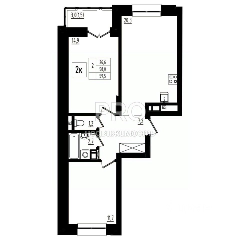 Общая площадь59,5 м2