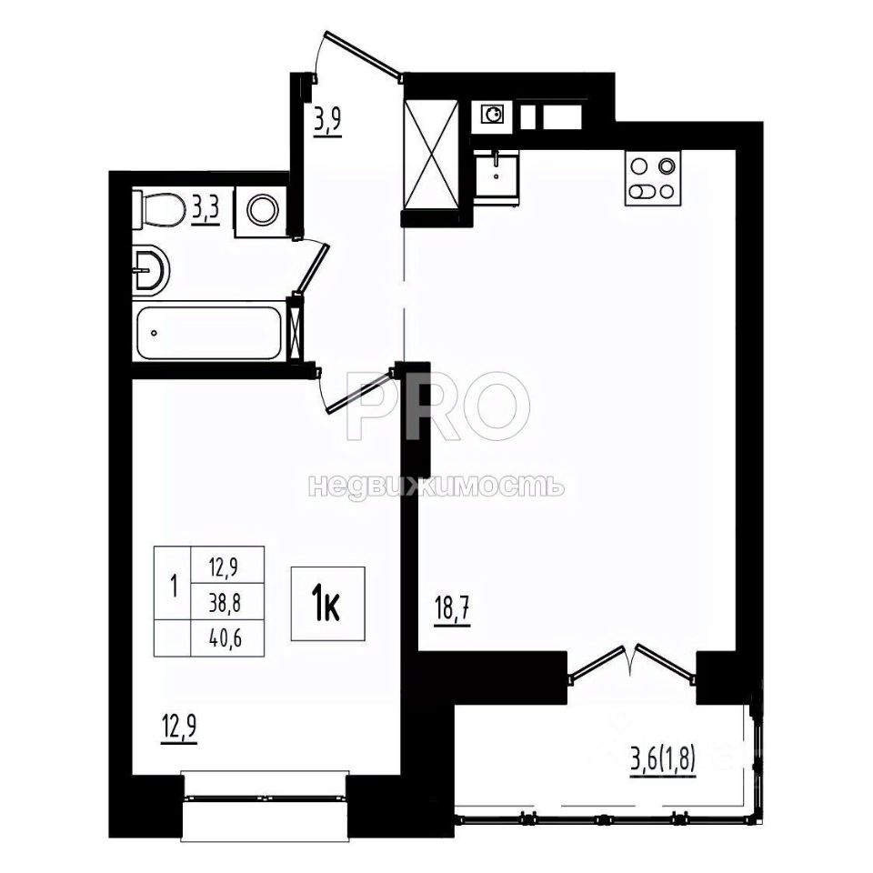 Общая площадь40,6 м2