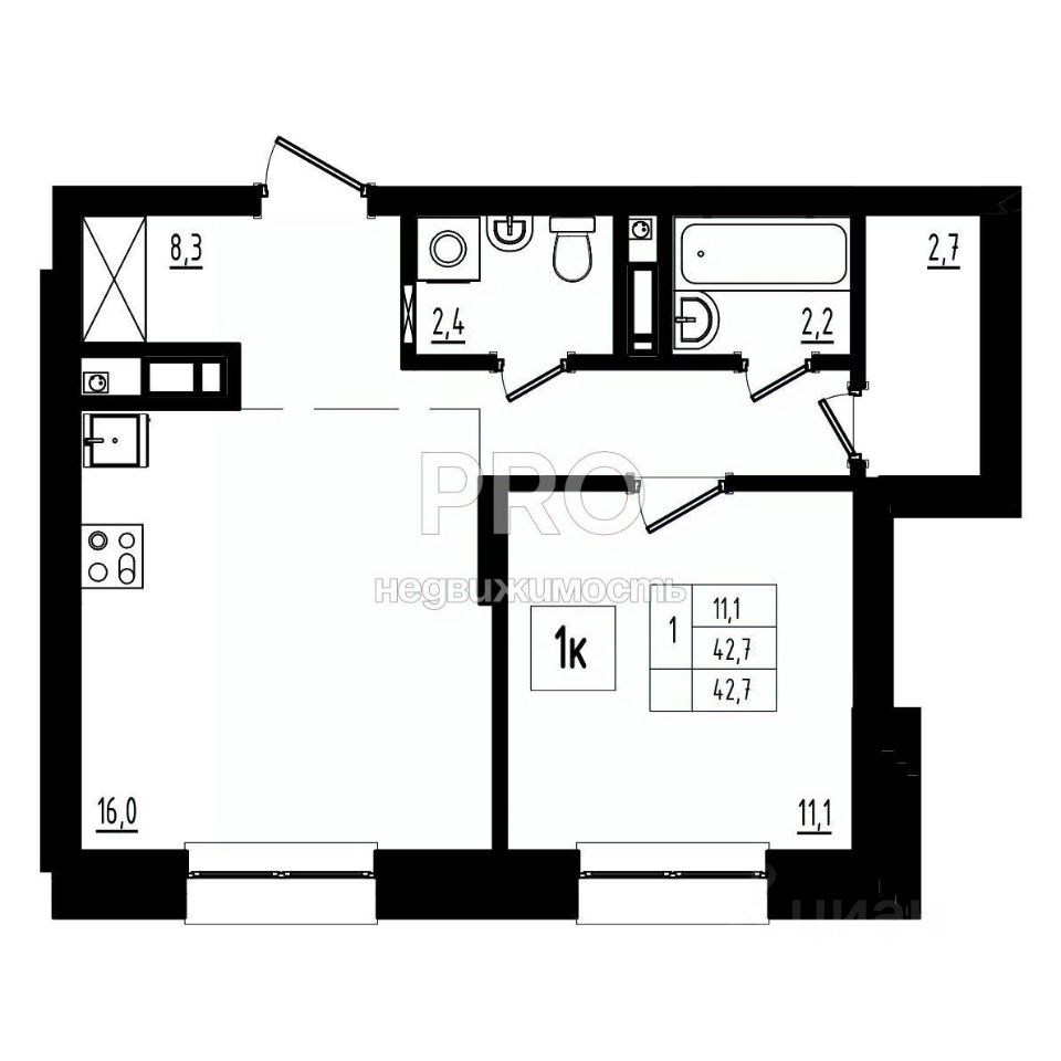 Общая площадь42,7 м2