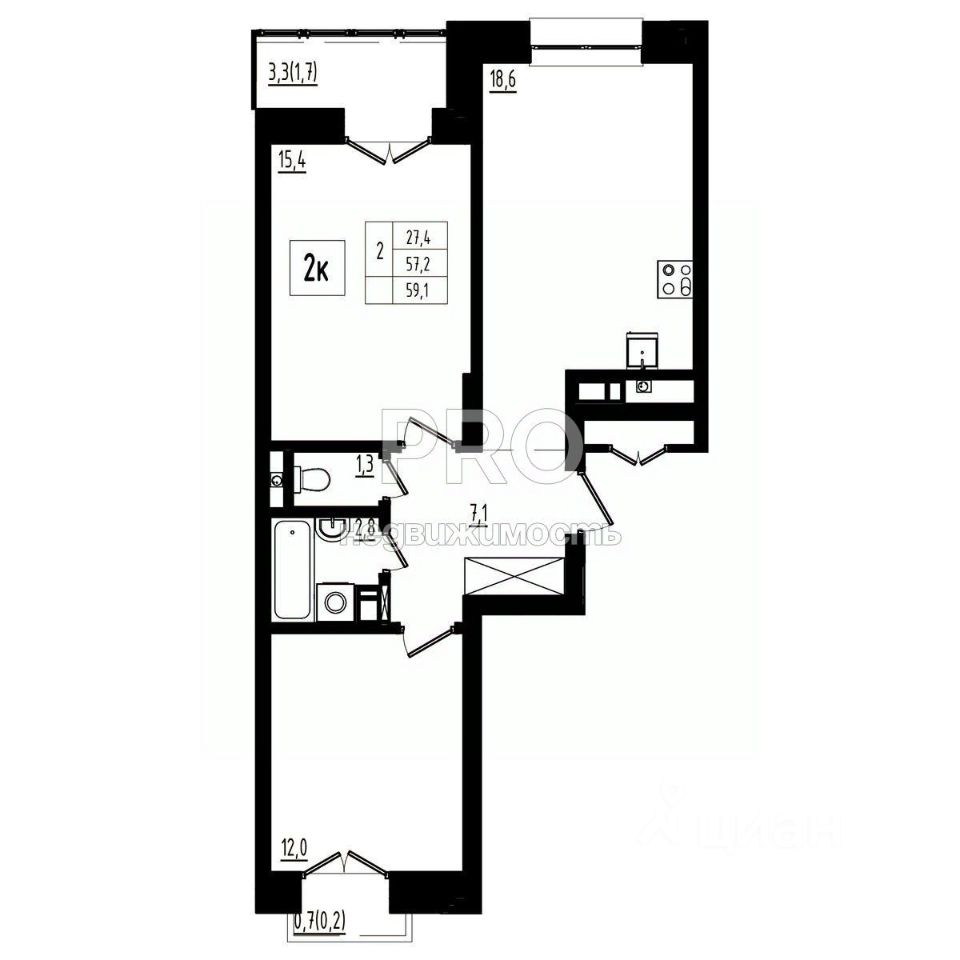 Общая площадь59,1 м2