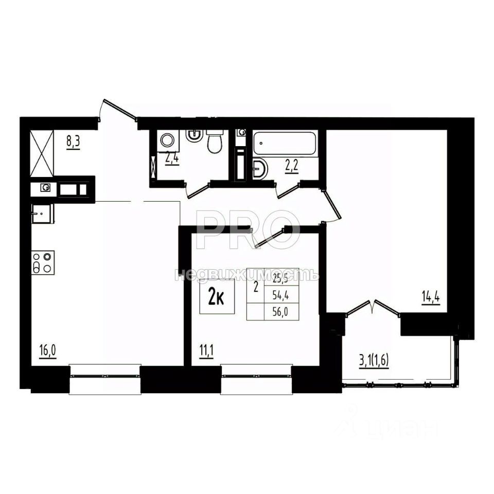 Общая площадь56 м2