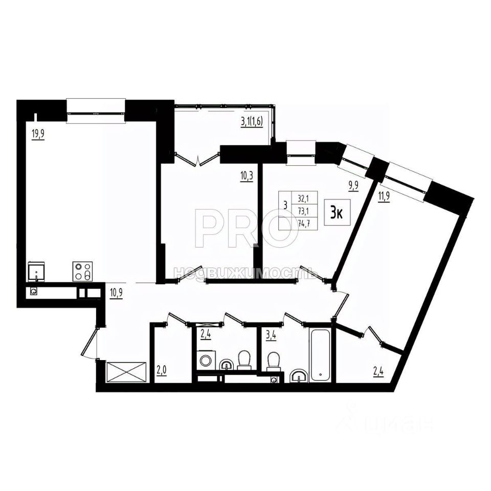 Общая площадь74,7 м2
