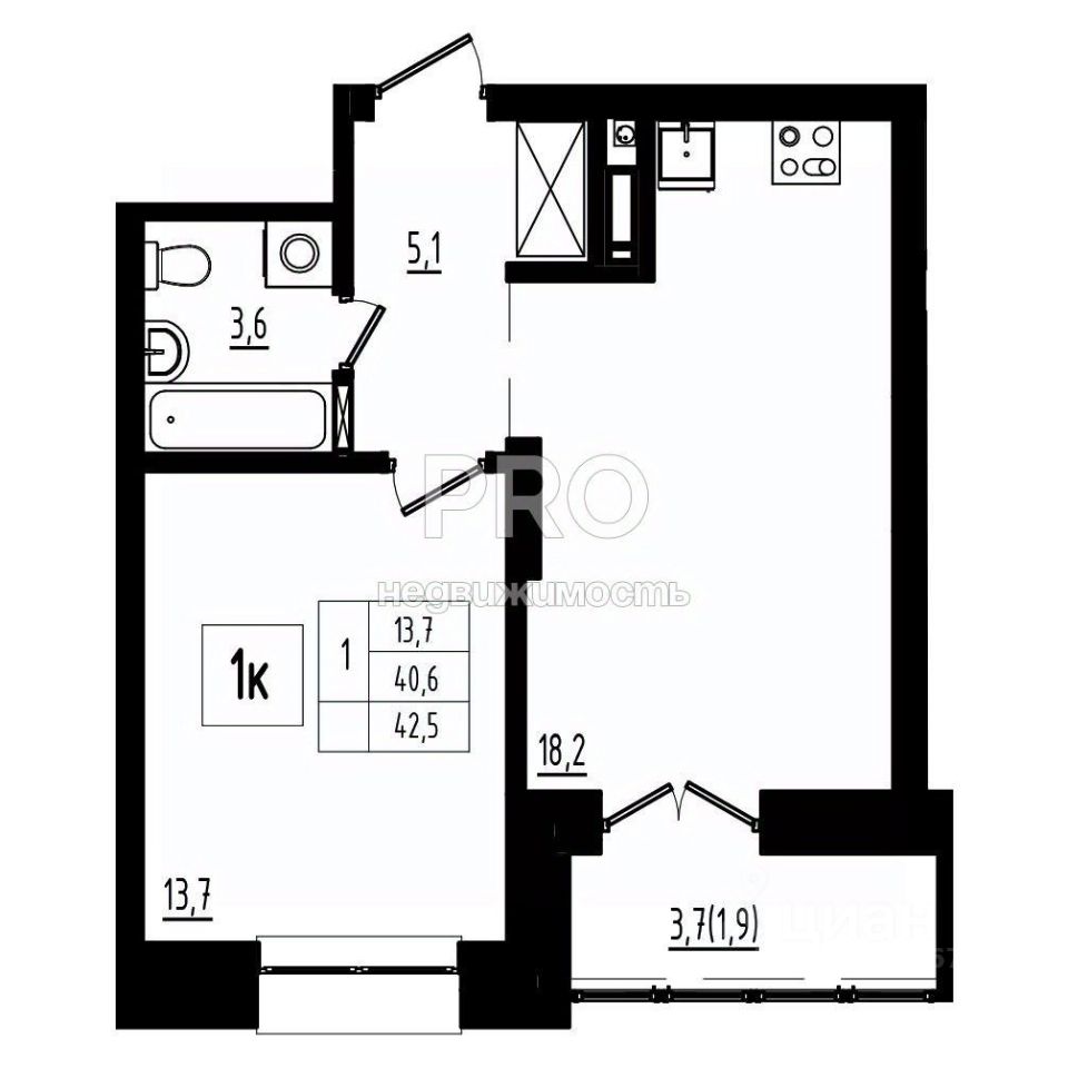 Общая площадь42,5 м2