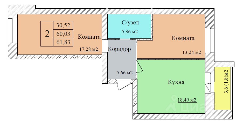 Общая площадь61,83 м2