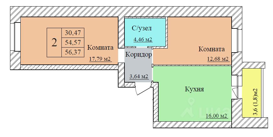 Общая площадь56,37 м2