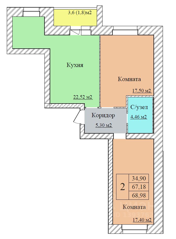 Общая площадь68,98 м2