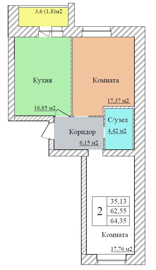 Общая площадь64,35 м2