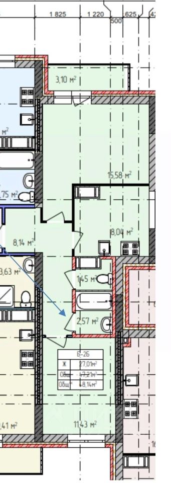 Квартира с предчистовой отделкой, проведена электрика и разводка сантехники. Установлена металлическая входная дверь.