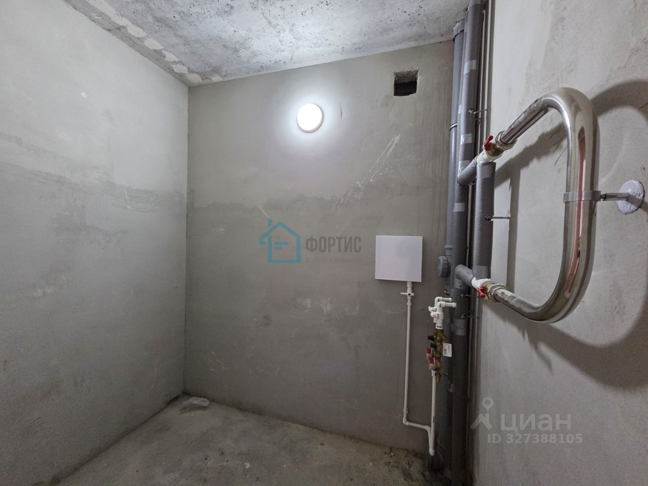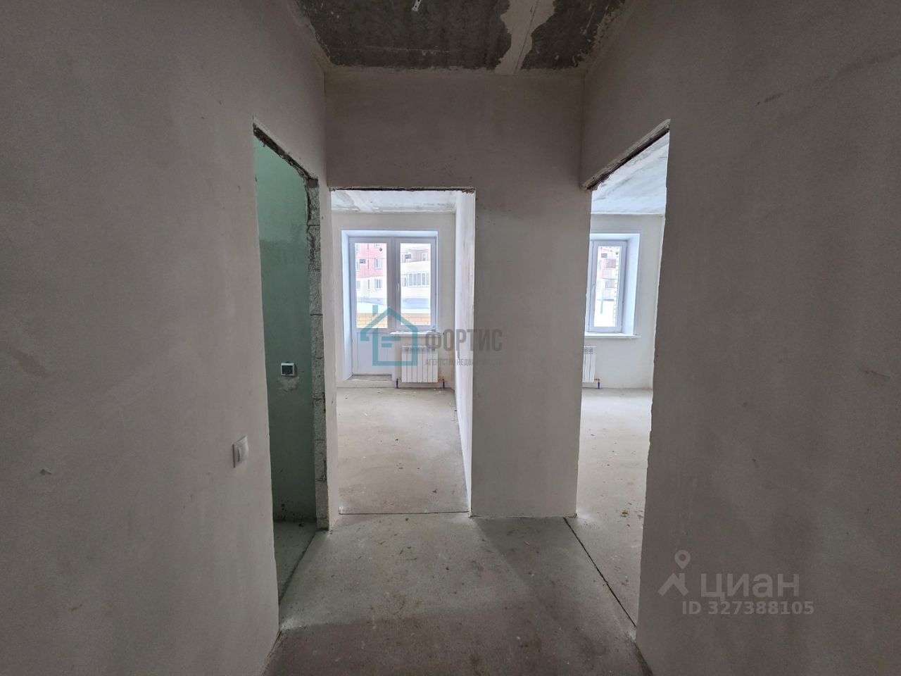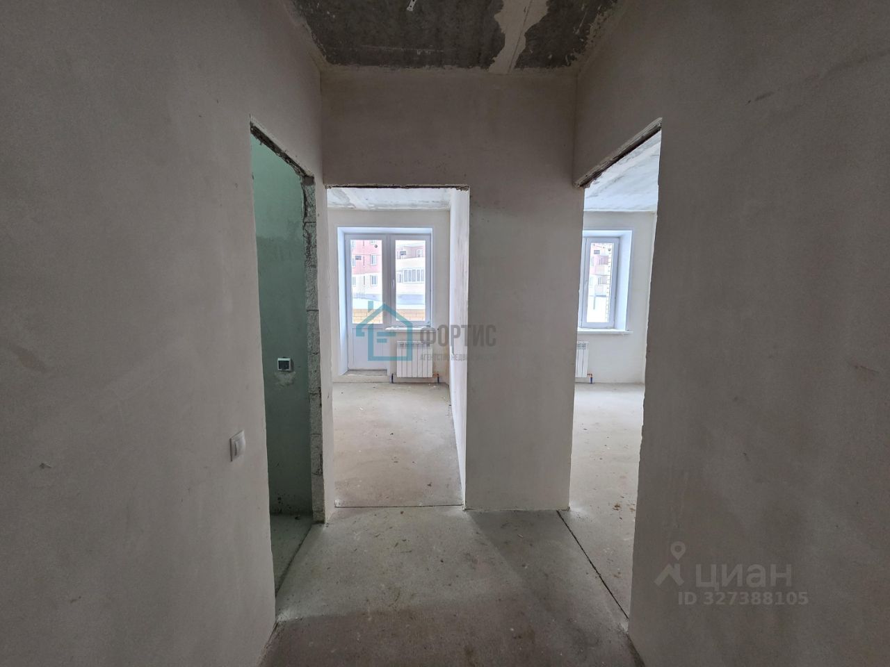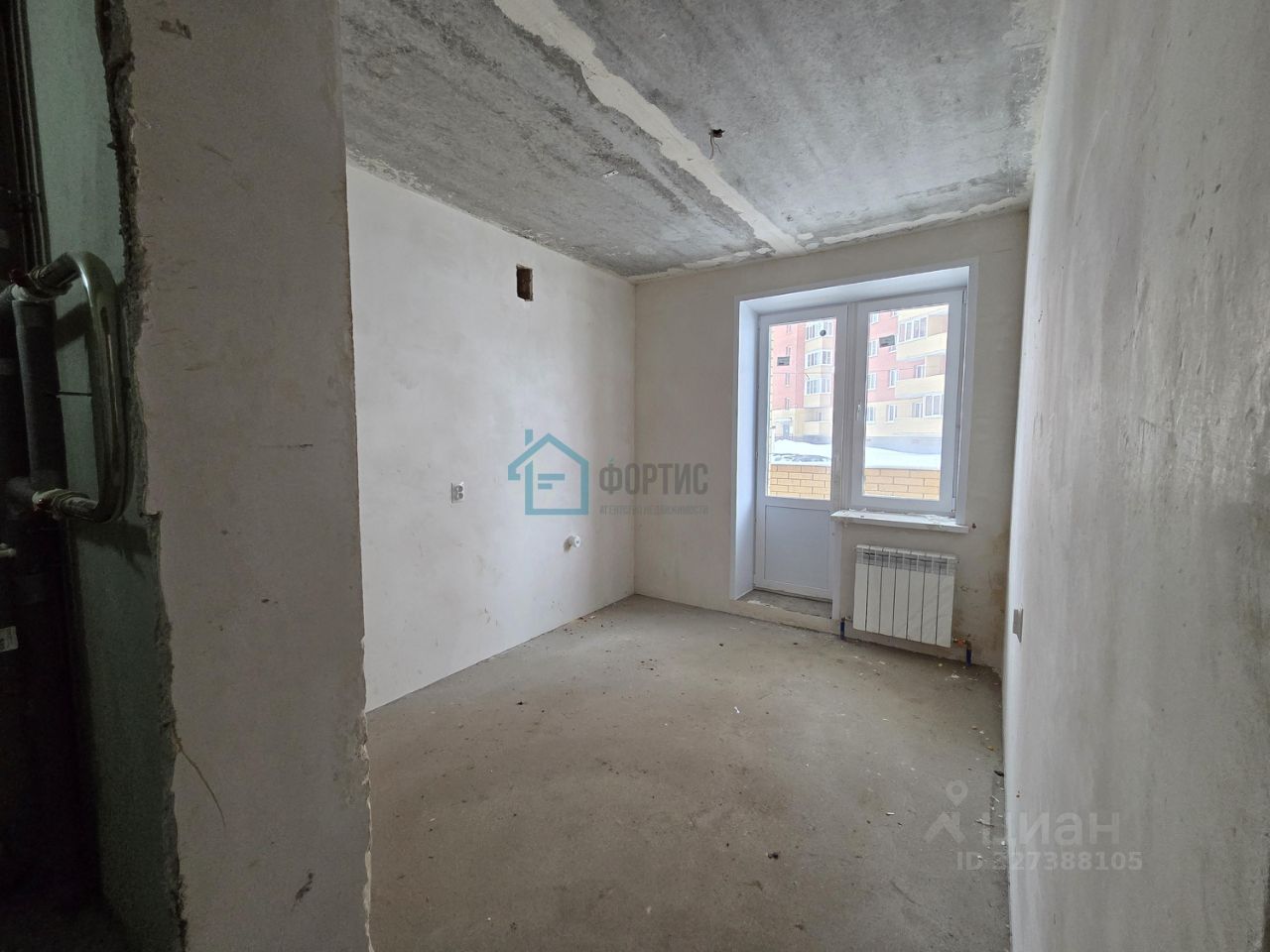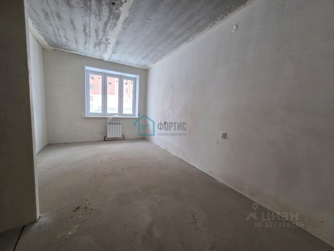 Отделка: - стены - простая штукатурка без обоев и окраски, - потолки - железобетонная плита без окраски, - полы - полусухая цементно-песчаная стяжка без покрытия, - скрытая электропроводка с розетками и выключателями, - система отопления с радиаторами, - стояки холодного и горячего водоснабжения с приборами учета, - канализационный стояк, без сантехники, - без межкомнатных дверей, - окна ПВХ, металлическая входная дверь.