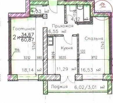 Планировка: Общая площадь 57,3 м². Комнаты : 16,3 и 18,1 м², раздельный санузел.